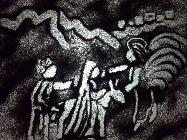 Ausschnitt aus sich veränderden Sandbild zur Weihnachtsgeschichte
