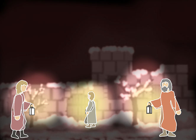 Hintergrund für Schattenpuppenspiel Die 10 Aussätzigen