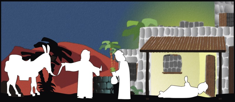 Hintergrund für Schattenpuppenspiel Die 10 Aussätzigen